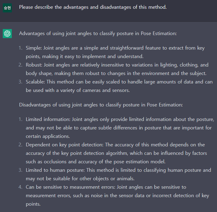 - 사람의 자세로 제한: 이 방법은 인간의 자세를 분류하는 것으로 제한되며 다른 물체나 동물에는 적합하지 않을 수 있다.