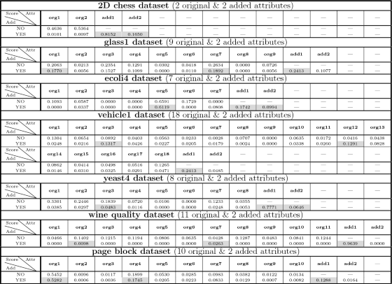 성능 시각화 이상치 점수와 를 속성에 추가한 "Add = yes" 가 거의 모든 경우에서 "Add = no"보다 성능이 뛰어나다