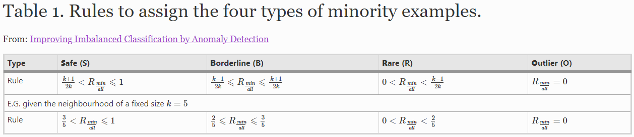 four types of samples (safe, borderline, rare and outlier)는 잘 모르겠다. 논문을 읽어보자.