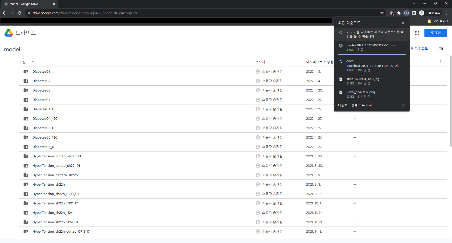 사진에서는 복사한 링크를 시크릿 탭으로 열어서 받았지만, 공유만 해도 다운로드 가능하다. 굿