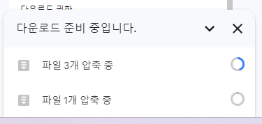 용량이 큰 파일 / 오래된 파일 / 수가 많은 파일을 다운로드 되지 않는다. 저 상태로 몇 시간 지나면, 다운로드 실패함 ㅡㅡ