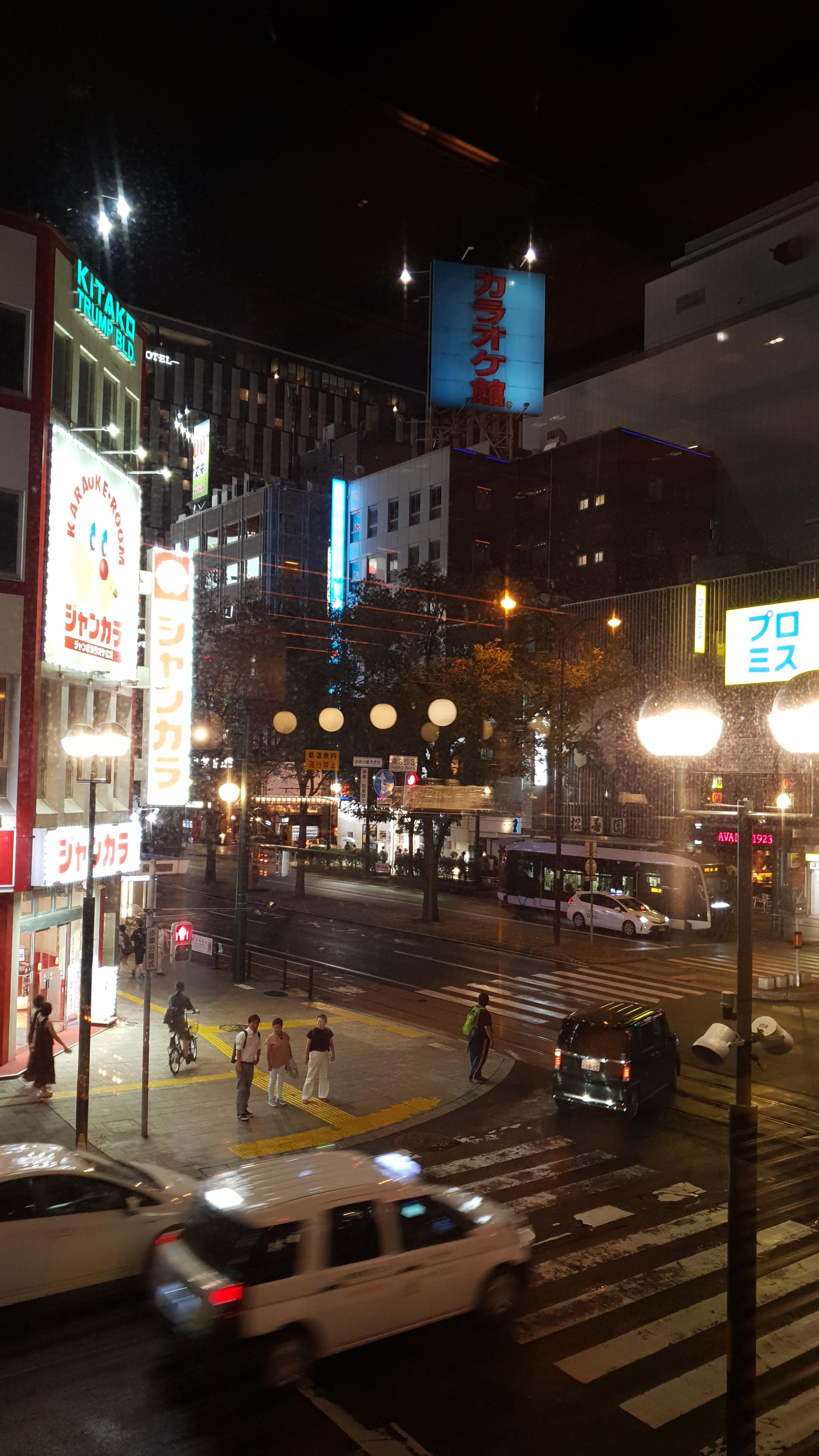 호텔 식당에서 본 풍경 야구는 그만 보고 이 호텔의 자랑인 식당을 이용하러 갔다. 1박당 코인을 4개인가 주는데, 이 코인으로 이것저것 바꿔 먹을 수 있다고 한다. 오모시로이한 시스템이다. 그리고 이 호텔 경치가 진짜 좋다. 노면전차, 전광판 그리고 사람들 삿포로는 그냥 감성이 뒤짐
