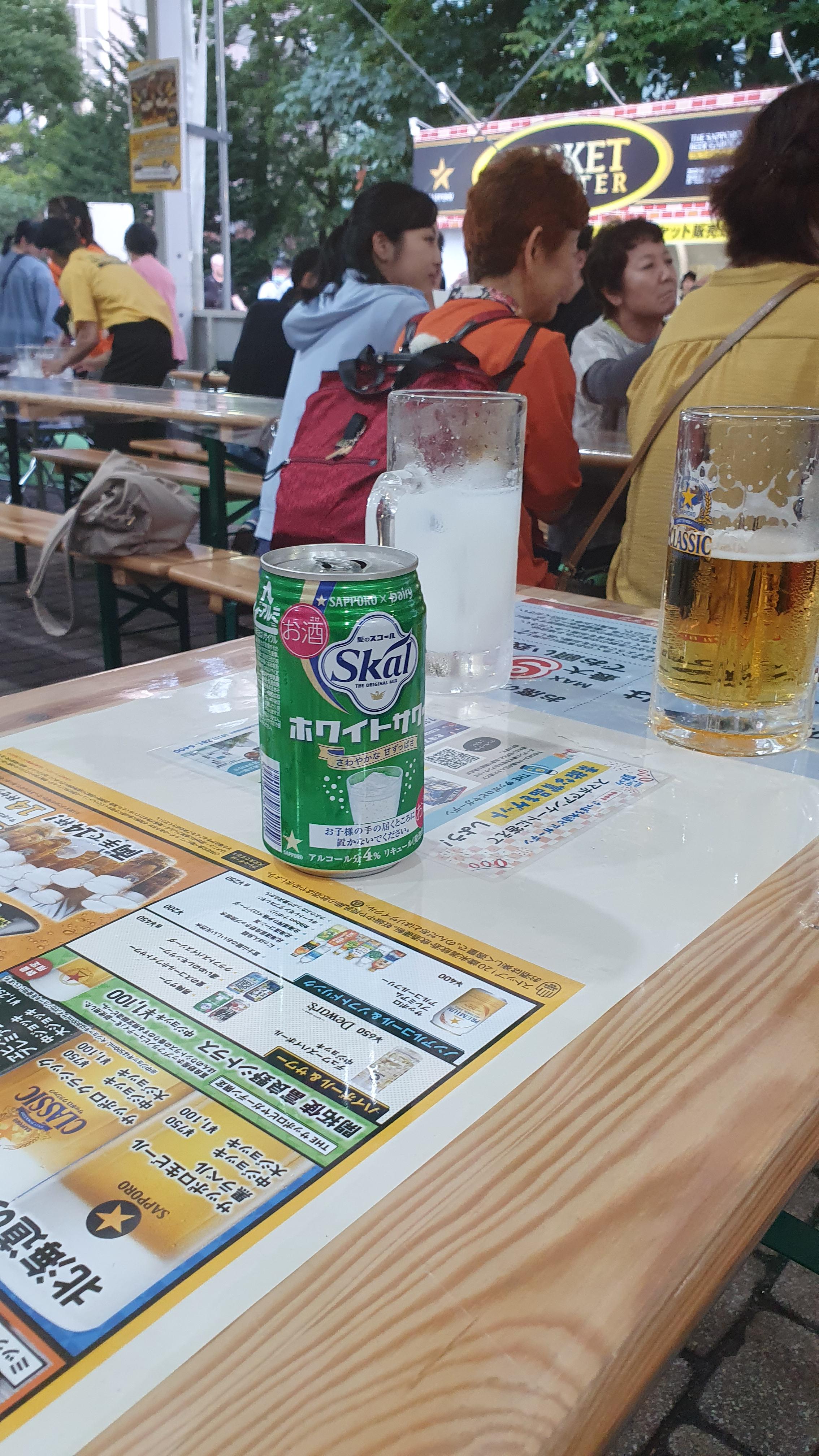 맥주걸이라고 해야하나? 독일식 코스프레하고 간판을 들고 판촉하는 사람을 보니, 일본스럽다고 느껴졌다. 키오스크로도 주문할 수 있었지만, 맥주걸에게 주문하면 테이블로 바로 갔다줘서 좋았다. 근데, 축제인걸 감안해도 맥주가 비싸다..! 생맥 500 한 잔에 750엔...? 이건 좀;; 후라노의 과일 뭐시기와 삿포로 클래식을 마셨는데 후라노는 그럭저럭 먹을만한 에일이었고, 삿포로 클래식은 그냥 꿀떡꿀떡 넘어간다. ㅈㄴ 맛있음. 삿포로 클래식 절대 먹어